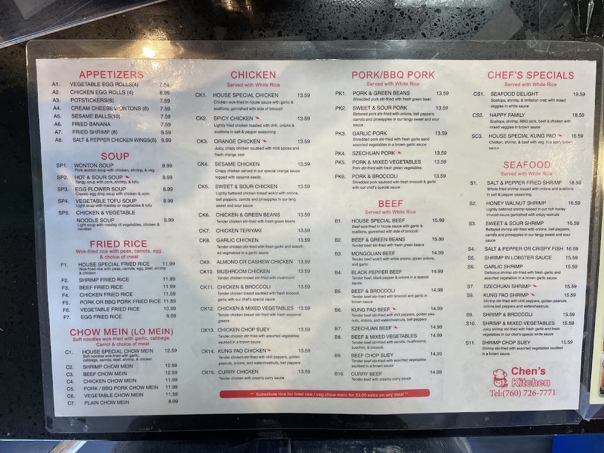 Whether you're looking for a cozy dinner or a feast for a group, Chen's Kitchen delivers quality and flavor that keeps you coming back for more.