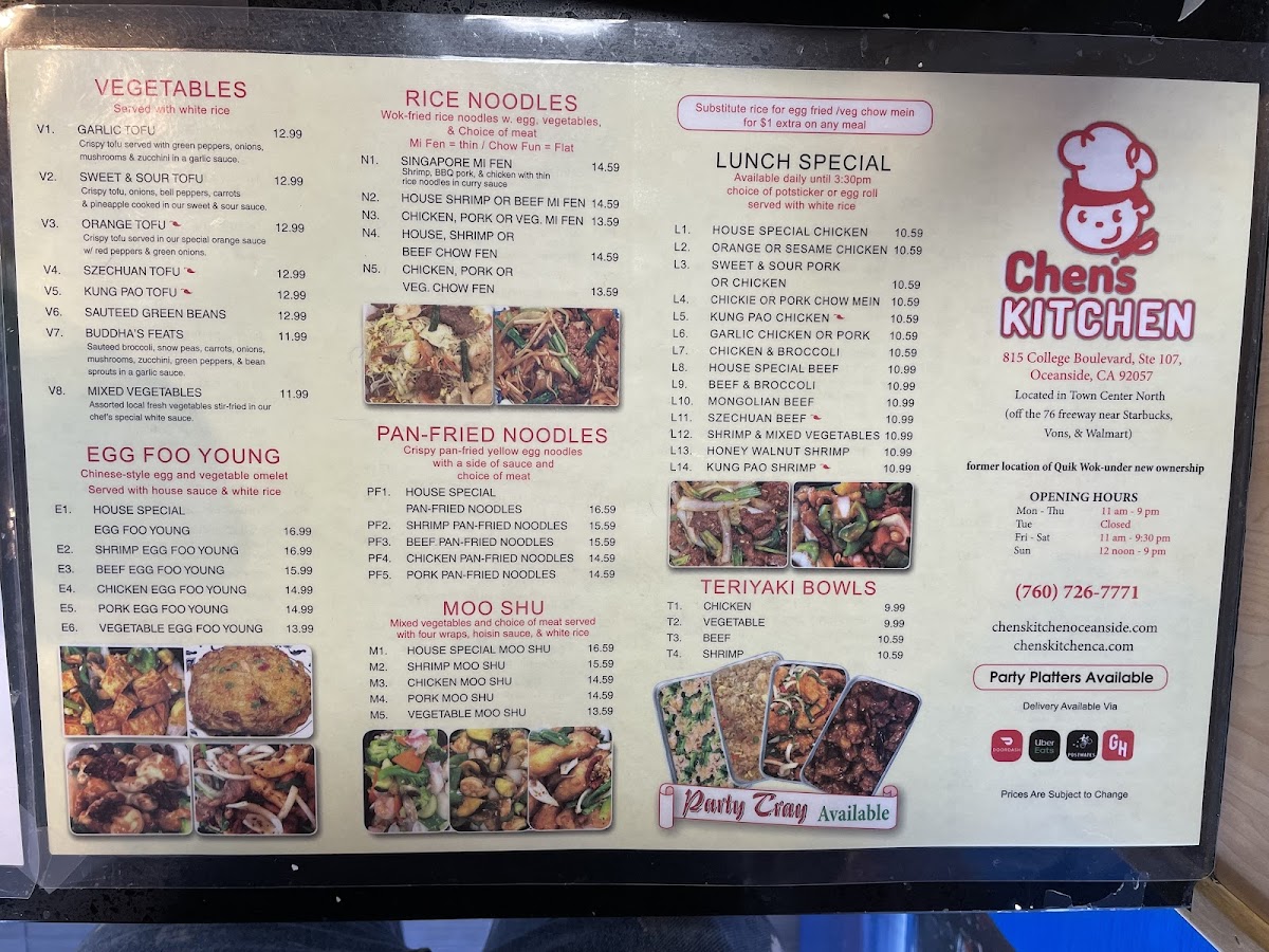 Welcome to Chen's Kitchen, a delightful culinary gem nestled in Oceanside, CA. Known for its outstanding Chinese cuisine, this eatery has quickly become a favorite among locals and visitors alike. Customers rave about the generous portions and incredible flavors, with dishes like Kung Pao Chicken and Honey Walnut Shrimp taking center stage.
